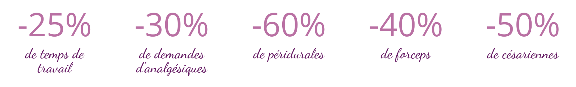 Des essais cliniques randomisés (*) sur le soutien émotionnel et physique pendant le travail ont démontré de multiples avantages :